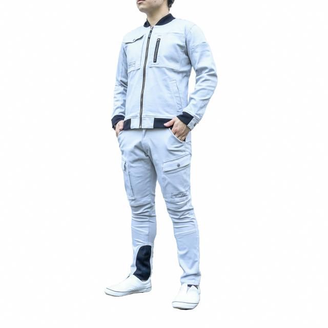 ・抜群の伸縮性を誇る中厚のカラーデニム素材でオールシーズン対応。